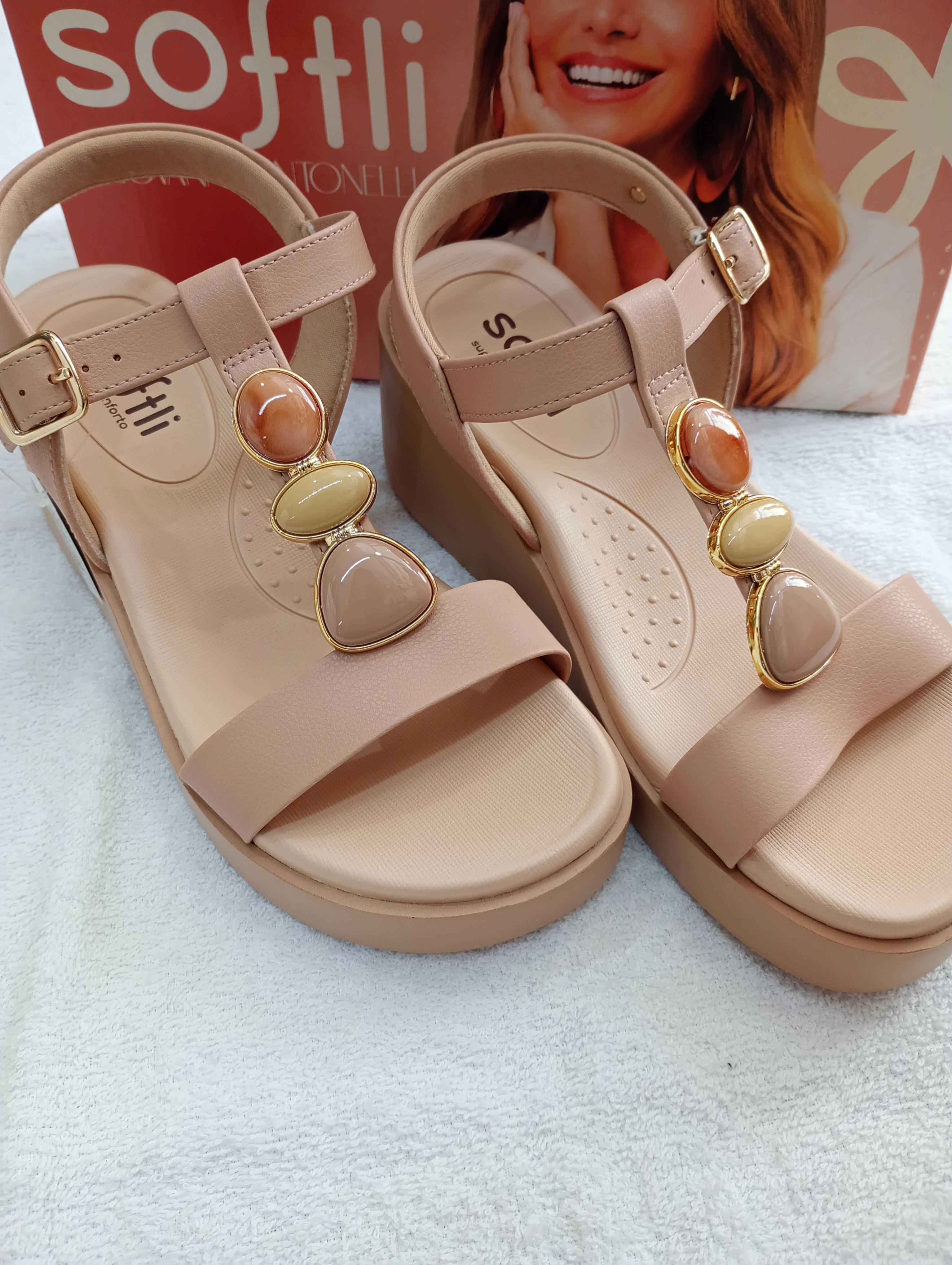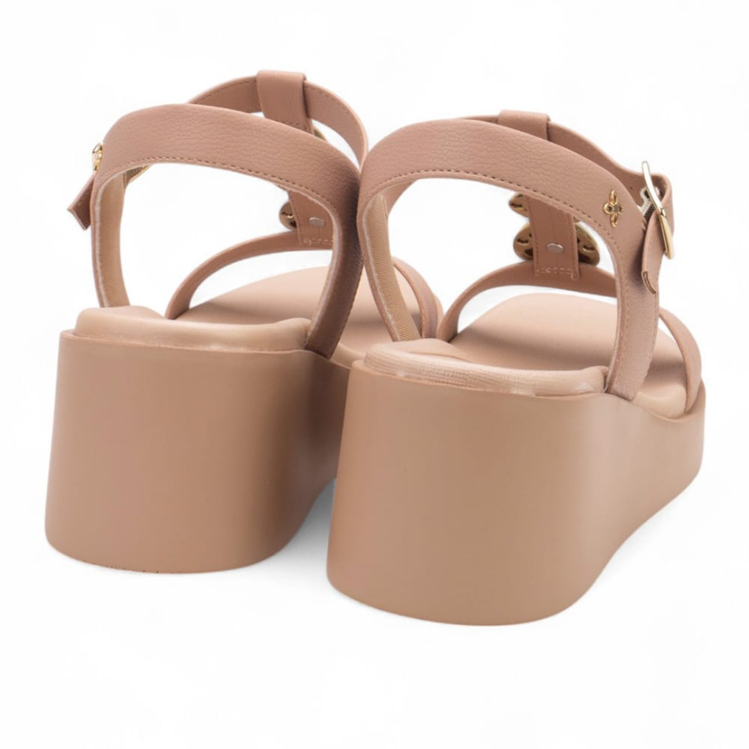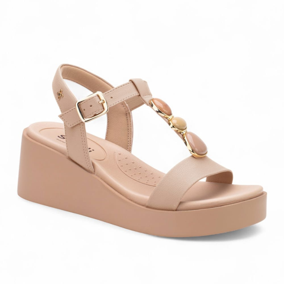 Sandalia de cuña Anabela en material Floater Lux en colores neutros con sutiles detalles de piedra y cierre de hebilla. Este modelo incorpora la tecnología Lower Impact, que proporciona amortiguación en el talón y la planta del pie para una mayor comodidad.