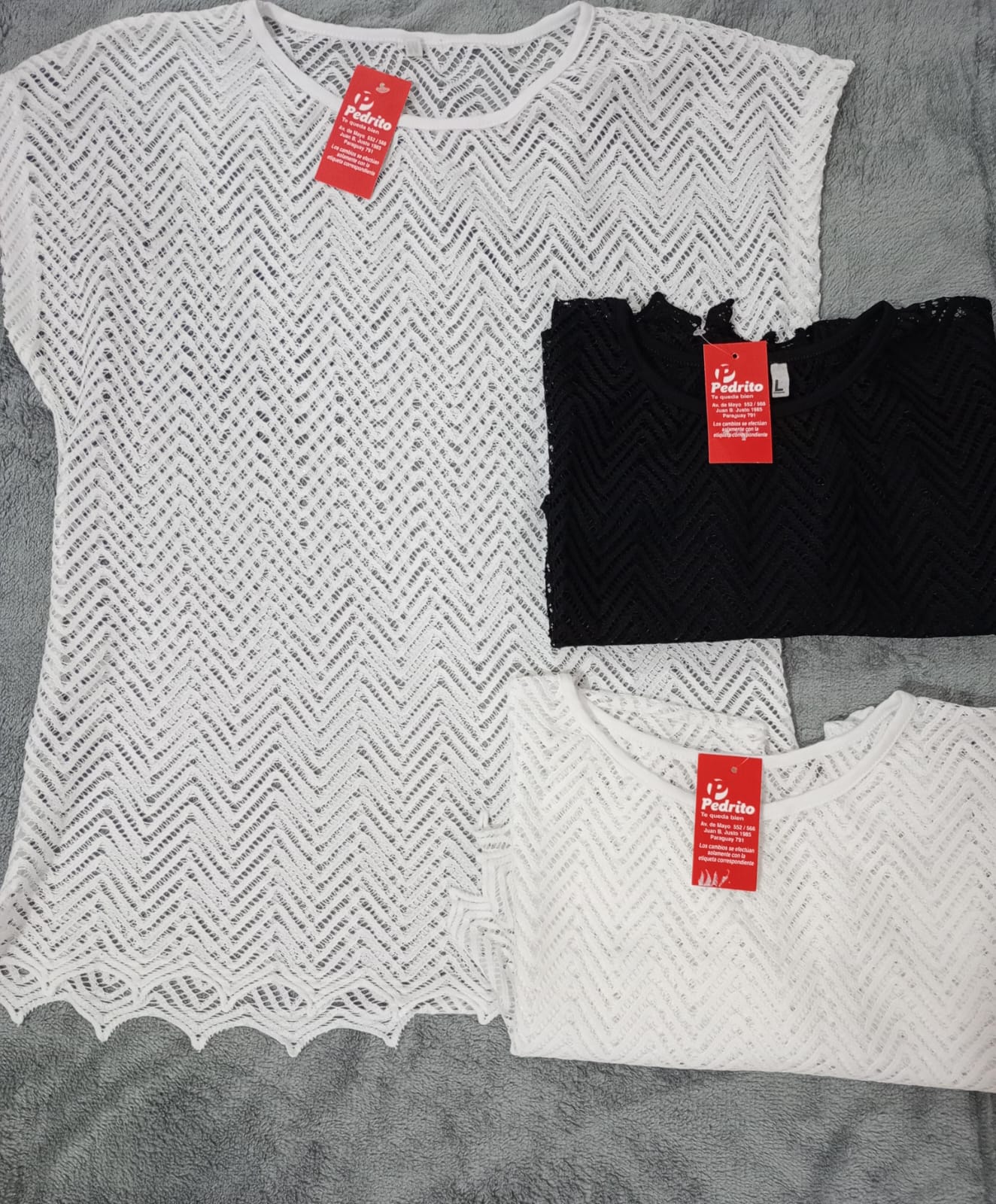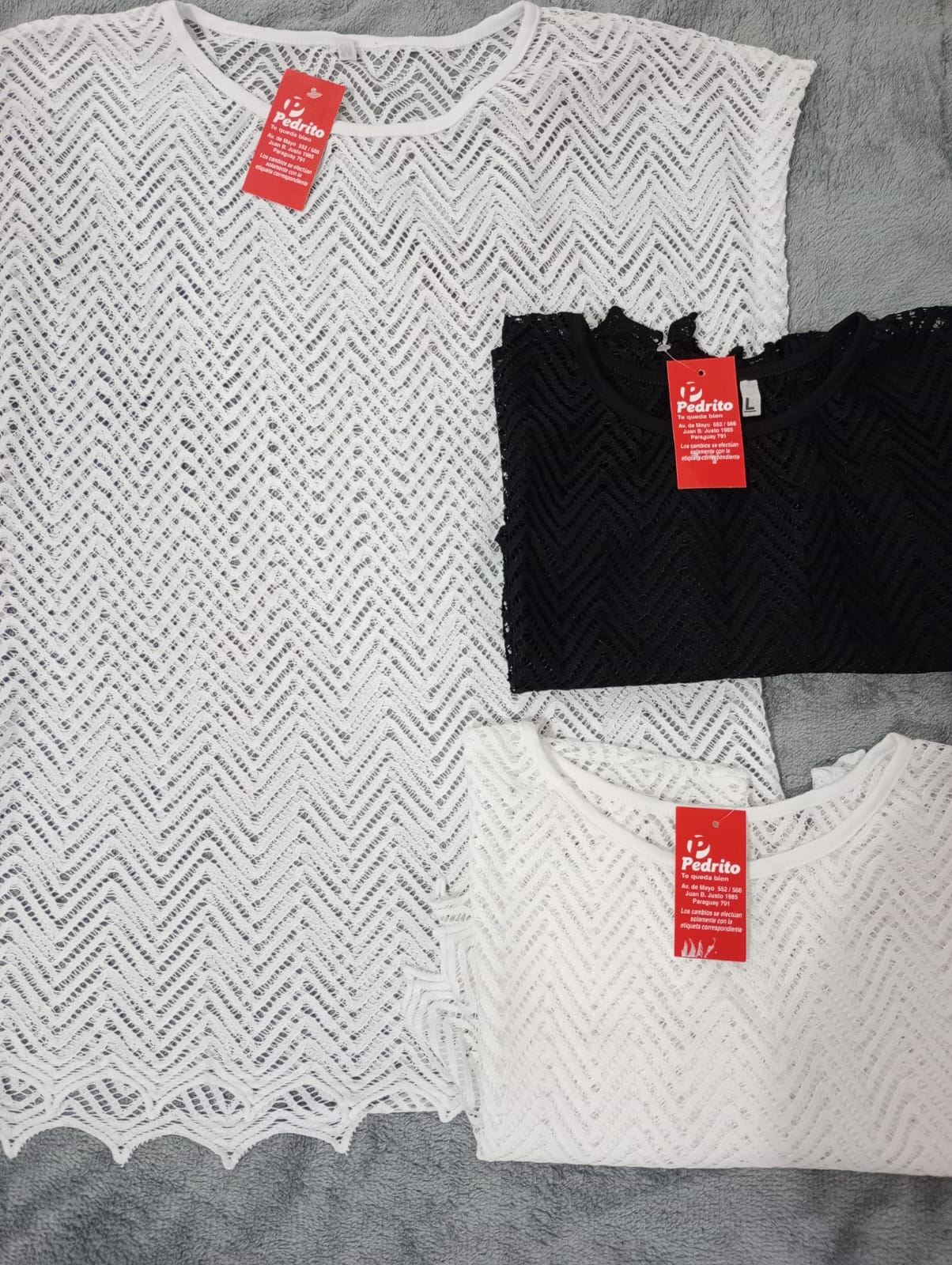 Remera calada. Trama geométrica delicada. 65% poliéster 35% algodón. Cod Ped: Art:570/000230