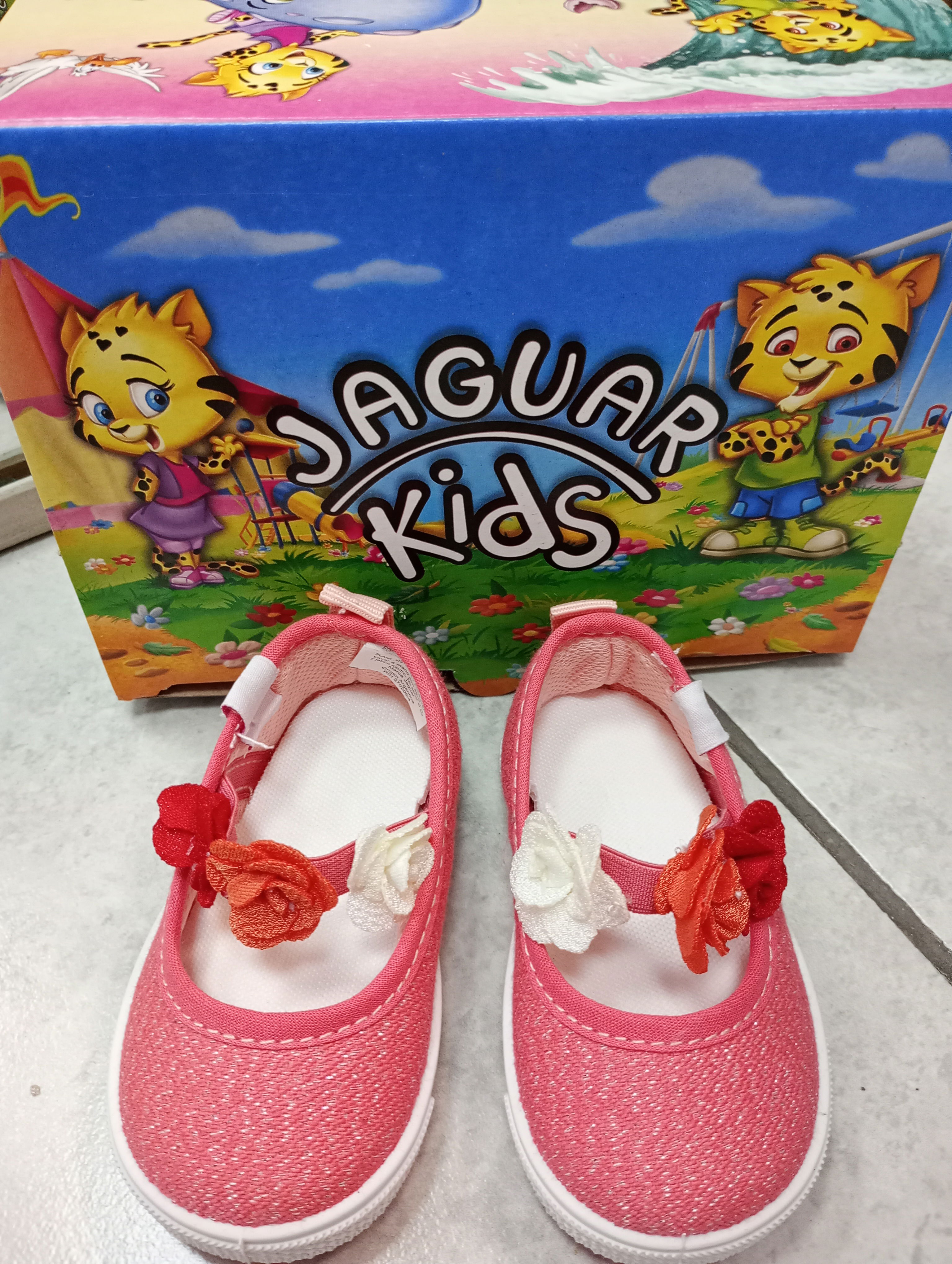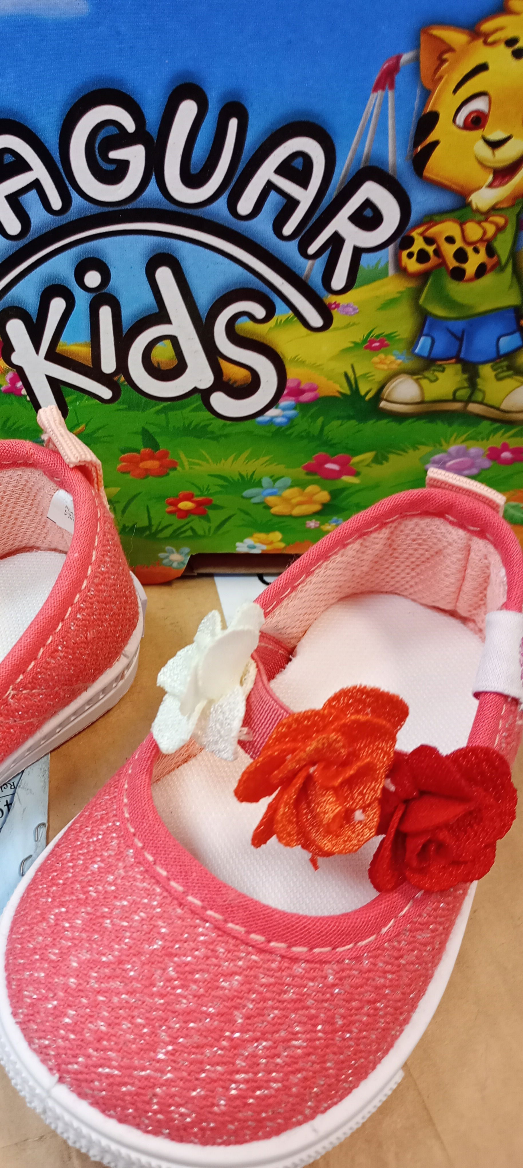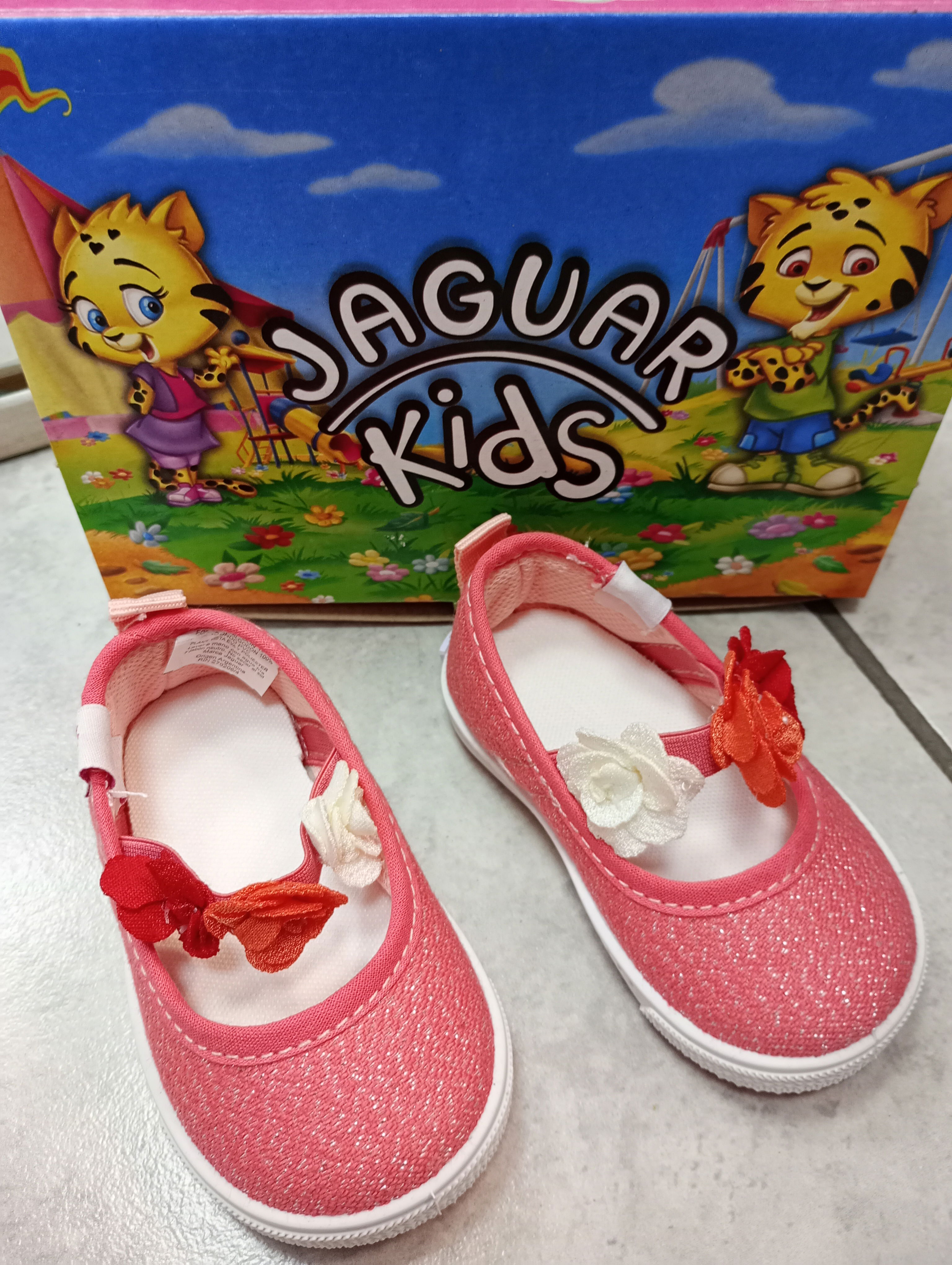 Zapatillas Jaguar Oficial Guillermina tela con brillitos y aplique de flores.